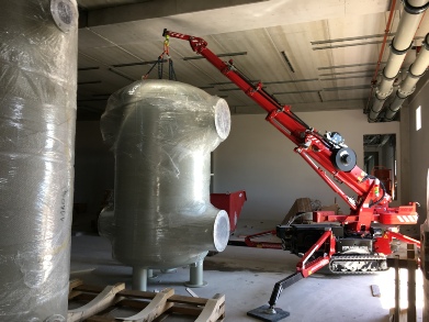 Luchtbehandelingskast stapelen met 2 Hoeflon C6 minihijskranen